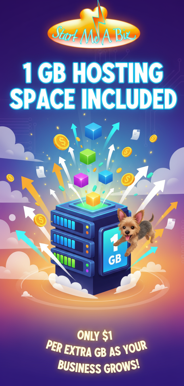 Remove StartMeABiz from your domain name as you grow for only $2/month.